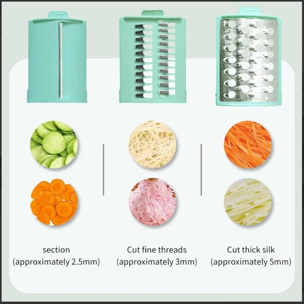 مزودة بـ ثلاث سكاكين مختلفة تسمح بتقطيع الخضروات والفواكه بأشكال متنوعة، مما يمنحك حرية الابتكار في إعداد الأطباق.